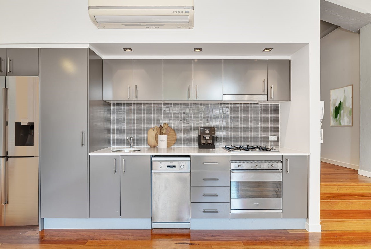 – Modern kitchen with Smeg appliances, including dishwasher