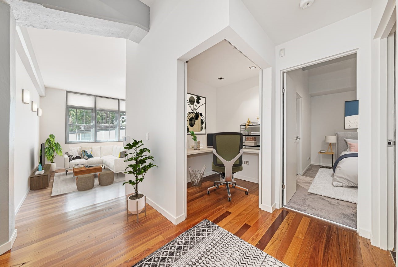 This stunning split-level one bedroom plus study apartment offers comfort and class with an industrial feel. Set in the highly sought-after Globe Mills warehouse conversion, this city pad presents as the ultimate lifestyle choice.